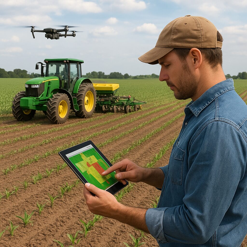Drony umożliwiają szybkie zbieranie wysokorozdzielczych zdjęć oraz danych multispektralnych. Pozwalają wykrywać stres roślin, niedobory wody czy choroby na wczesnym etapie. Zdjęcia z drona przetworzone w oprogramowaniu GIS pomagają w tworzeniu map zmienności, które są podstawą do planów zabiegów.