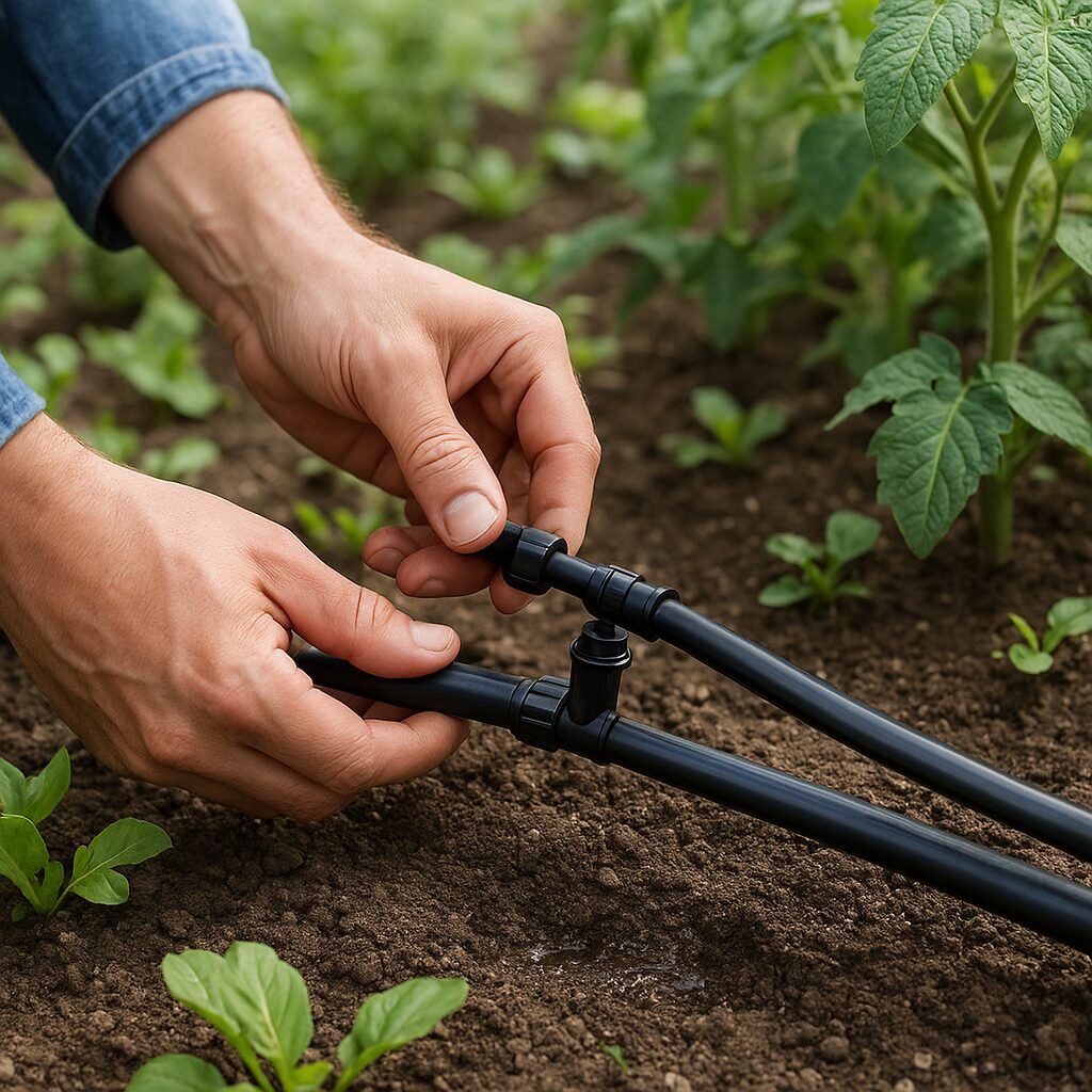 - Linie kroplujące, mikrozraszacze i zraszacze talerzowe – zależnie od uprawy.