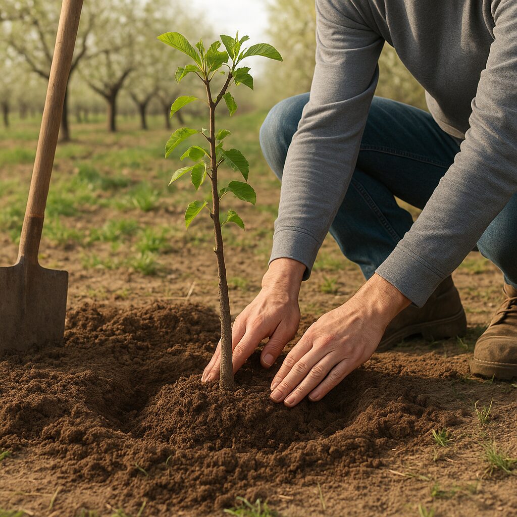 - Zaprojektuj przebieg alei, szerokość międzyrzędzi i system podpór (dla drzew kolumnowych, formowanych lub wolno rosnących). Dobre zagospodarowanie terenu skraca czas operacji mechanicznych i ułatwia pielęgnację.