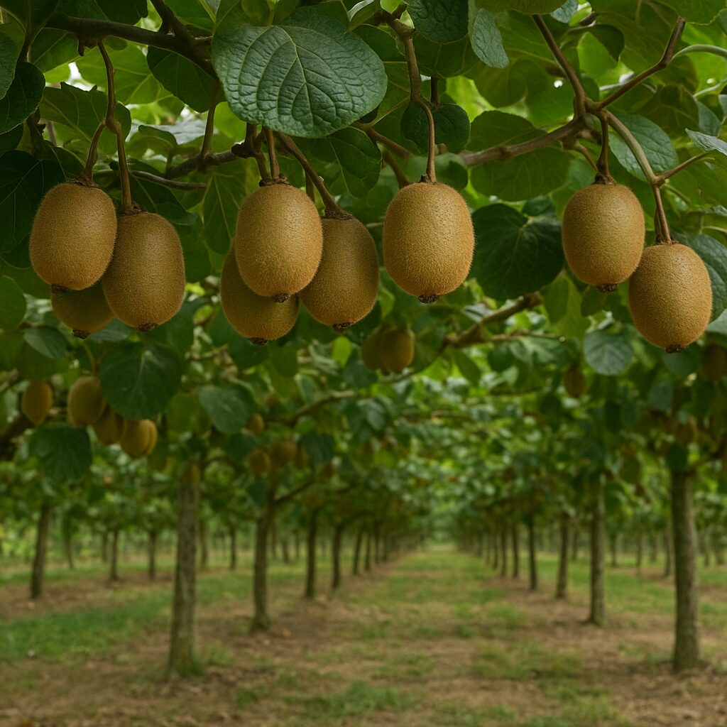 Plantacje kiwi są prowadzone zwykle na systemach pergoli, kratek lub szpalerach, które umożliwiają dobre nasłonecznienie i ułatwiają zbiory. Prawidłowe prowadzenie krzewu i cięcie kształtujące są kluczowe dla równomiernego plonowania i jakości owoców.