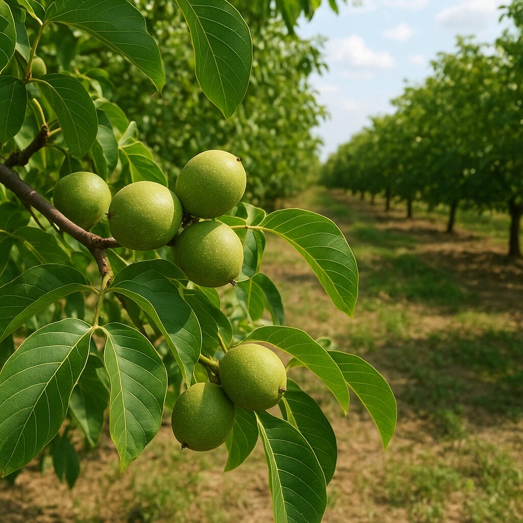 • Nawożenie zbilansowane: składniki makro- i mikroelementy dostosowane do analizy gleby; ważne dla kondycji drzewa i wielkości jądra.